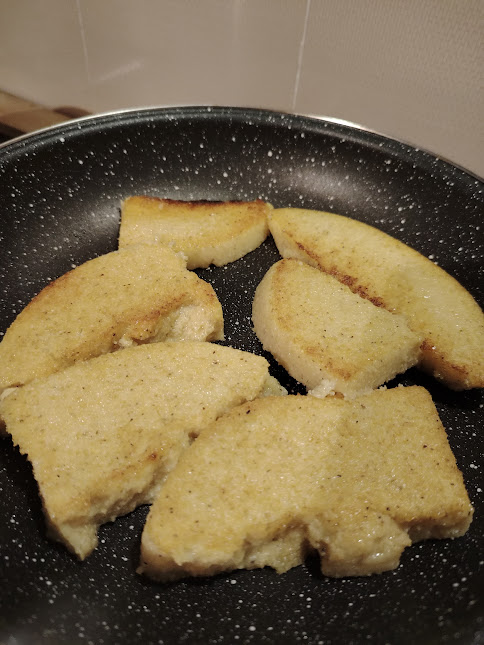Pasos muy simples, es una manera sabrosa de utilizar la polenta sobrante… Pero también está bien la polenta recién hecha…