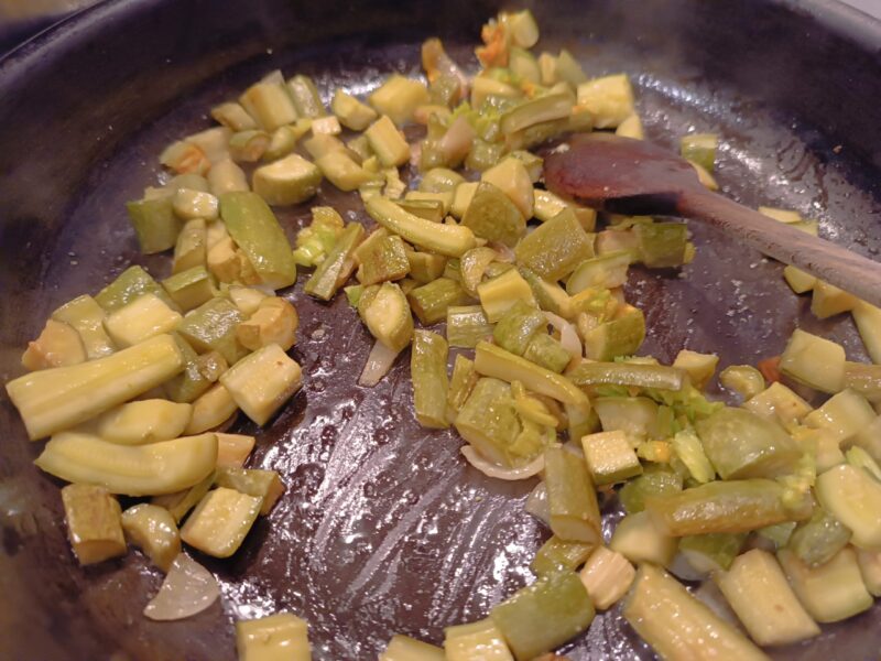El huerto ahora está casi a pleno rendimiento, entre calabacines, hierbas, apios y cebollas, cada día hay que inventar algo para consumir las verduras, la despensa empieza a tomar de nuevo la dimensión adecuada.