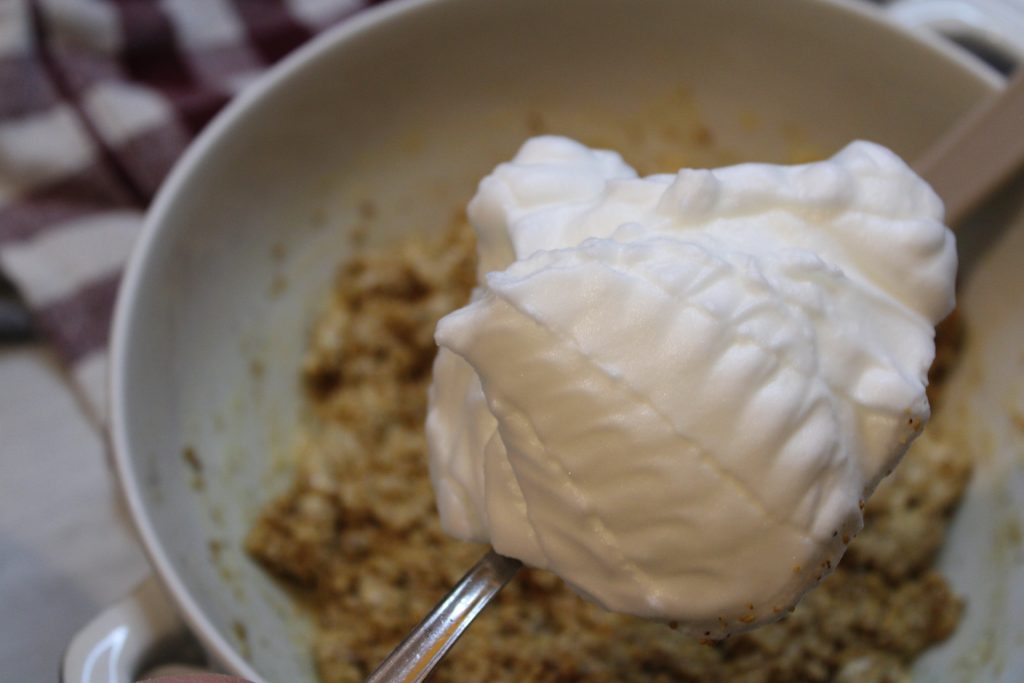 Claras montadas a punto de nieve, yemas con el azúcar y luego la magia…