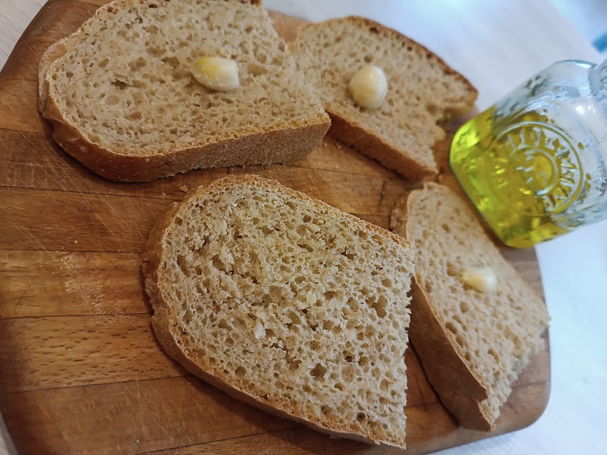 Mientras tanto, corta el pan en rebanadas, y tuéstalo o ásalo, frótalo con ajo y…