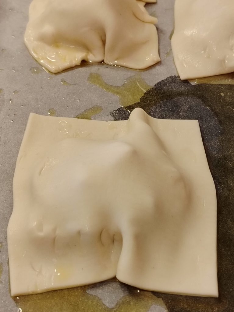 • Cubrid con un cuadrado de hojaldre y hornead a 200 grados durante unos 15 minutos.