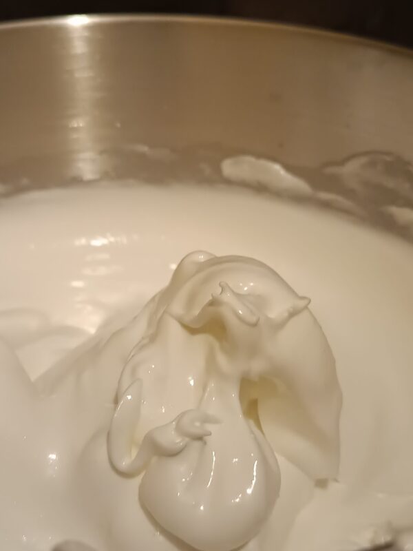 • Monta las claras a punto de nieve bien firme, agregando la pizca de sal antes de comenzar; añade el azúcar poco a poco.