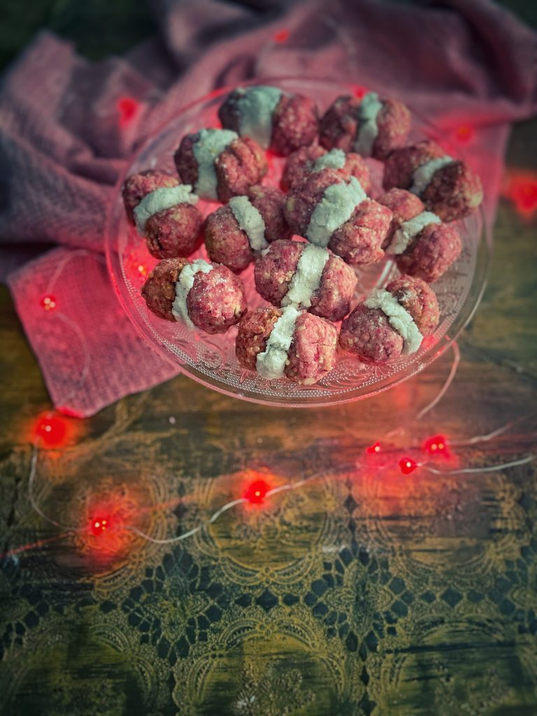 Formado: Forma bolitas de 10-12 gramos. Colócalas en una bandeja forrada con papel de horno, bien separadas.