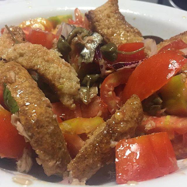 A pesar del nombre, no tiene nada que ver con la caponata de berenjenas y se inserta más bien en la amplia familia de las “ensaladas de pan”.