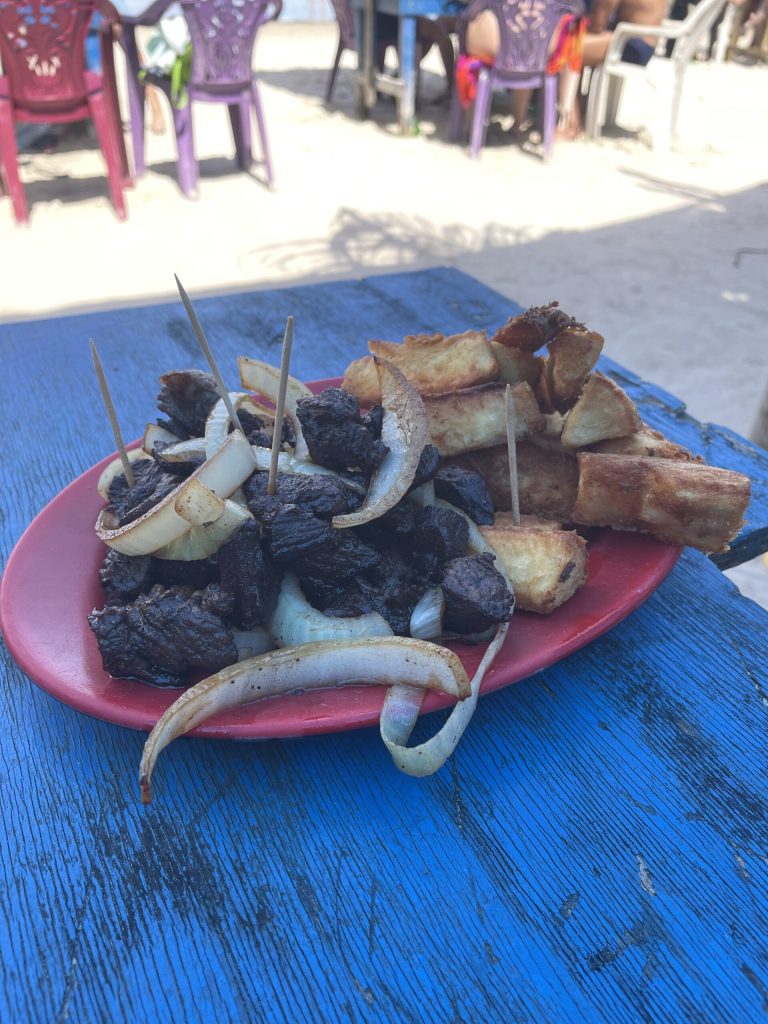 Carne do sol y aipim frito en la playa de Itacaré en nuestro viaje de marzo de 2026.