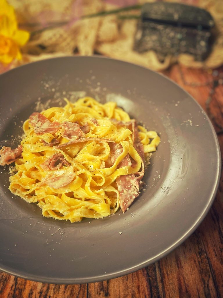 La receta habría sido creada precisamente en su honor o, más precisamente, como un tributo a su pasión por los platos ricos y cremosos, como la «pasta alla carbonara» que, aunque similar en su base, tiene una identidad propia.
