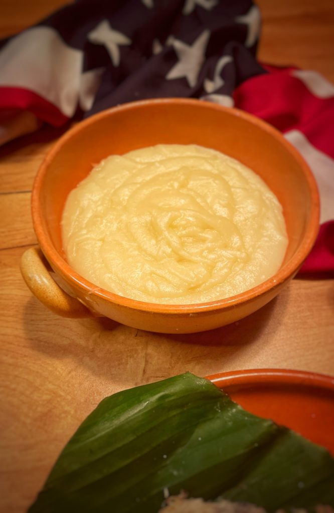 Tritura o licúa con agua hasta obtener una consistencia suave y cremosa (poi). Añade sal si lo deseas.