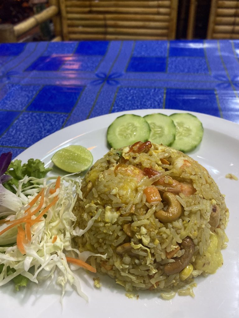 Esta es la versión perfecta y abundante del Khao op sapparot comida en el restaurante del Resort «Villa Cha Cha» en Ao Nam Mao, Krabi, donde me alojé entre octubre y noviembre de 2024.