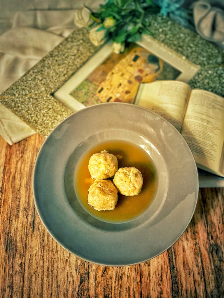 Esta es la versión «en caldo», pero puedes sazonar los knödel también con simple mantequilla derretida después de haberlos hervido en agua caliente.