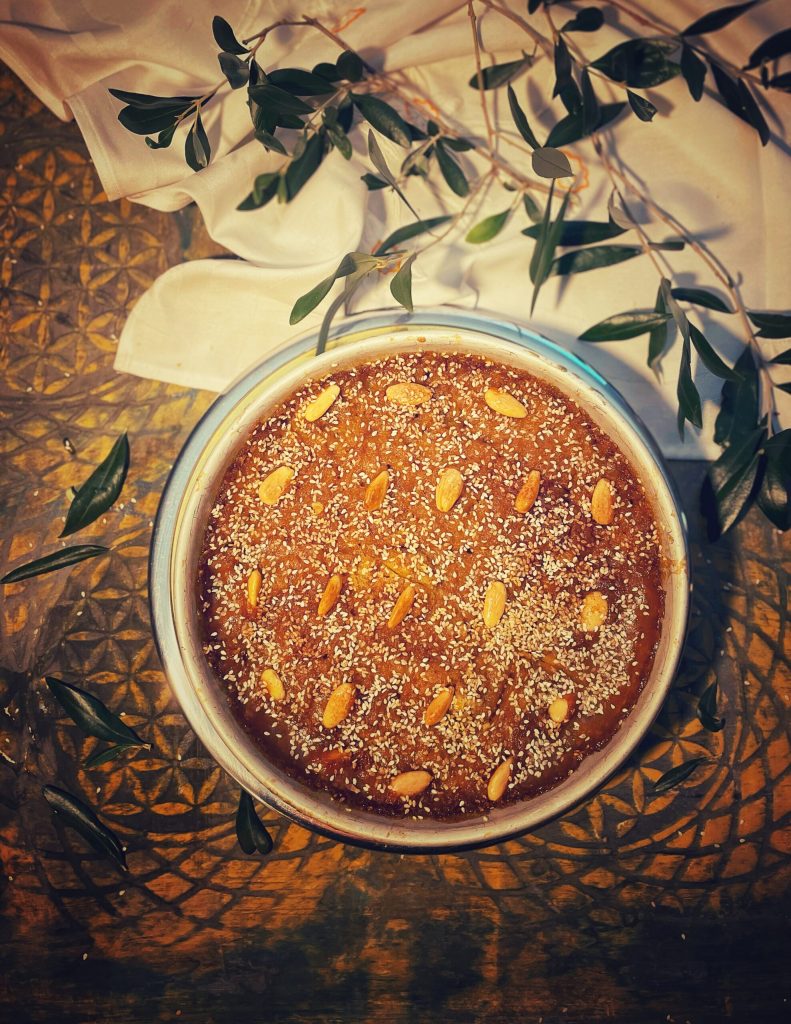 Las dos preparaciones no podrían ser más diferentes: la Vasilopita clásica es alta y esponjosa, mientras que la Ladopita es un pastel «de sustancia», sin huevos ni lácteos, que debe su magia a la reacción entre la harina tostada y el almíbar caliente.