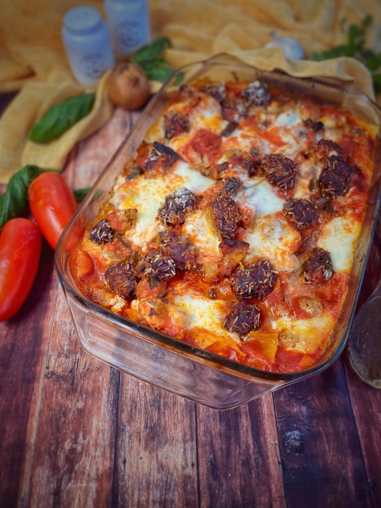 👉He hecho una versión sin gluten con pasta para lasaña de maíz y mi variante fusión/étnica es el kibe, o kibbeh o quibe, es decir, una albóndiga frita y alargada típica del medio oriente hecha con bulgur o arroz y carne de res (ya encontráis la receta en el blog en su versión brasileña).
