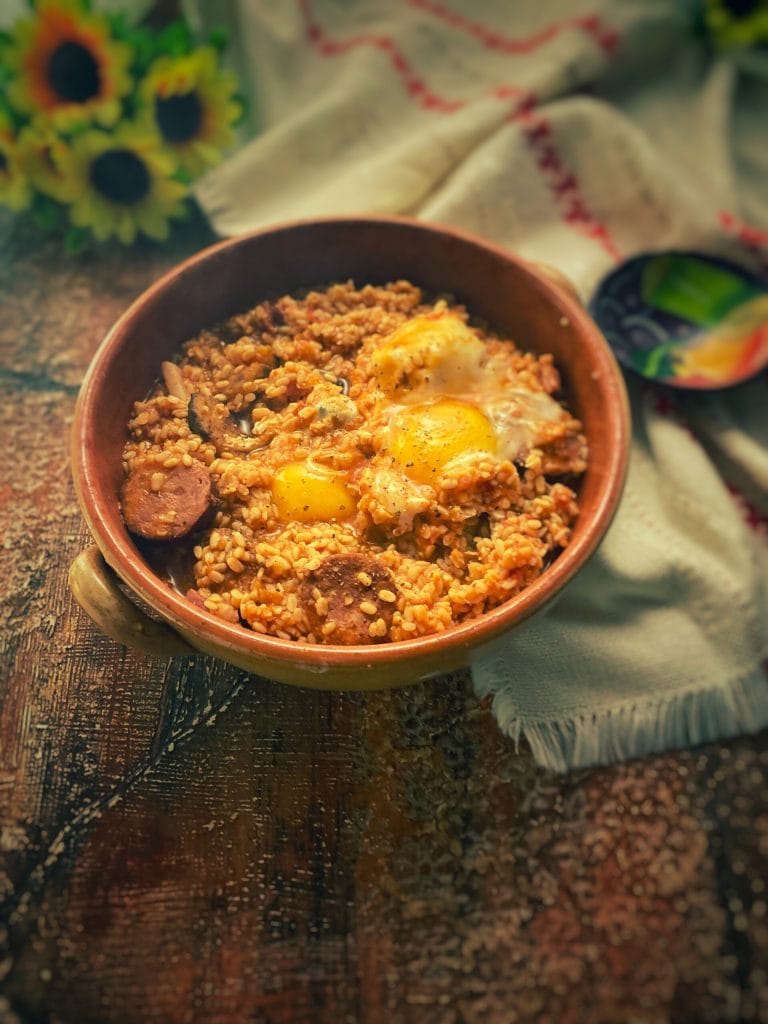 Lentejas a la veracruzana es una rica sopa de lentejas con chorizo y panceta, tomates, huevos y plátanos maduros (plátano maduro) fritos.