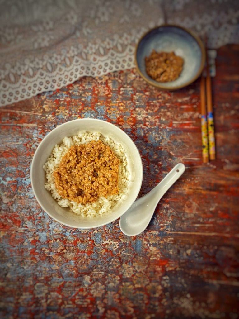 Para comerlo junto al arroz: mezclarlo bien con los palillos (al menos 20 vueltas en sentido horario y antihorario).