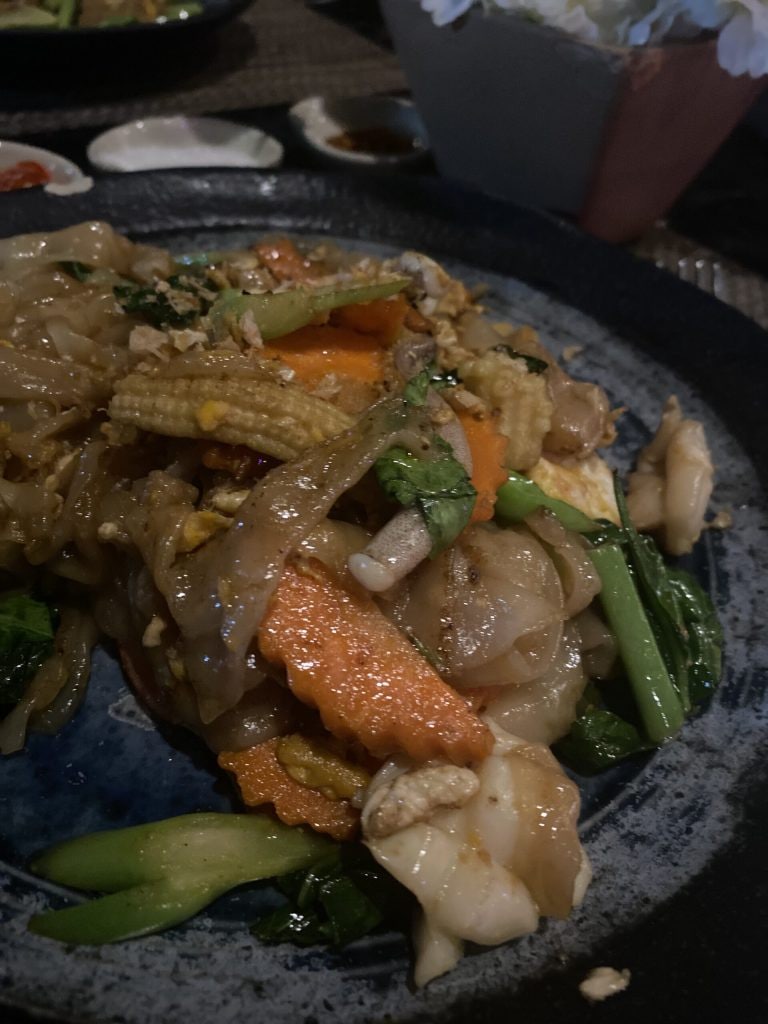 La diferencia es que el pad see ew normalmente se saltea en sartén seco y a menudo se hace con carne de res, mientras que los otros platos se sirven en una salsa espesa y generalmente tienen un sabor más ligero.