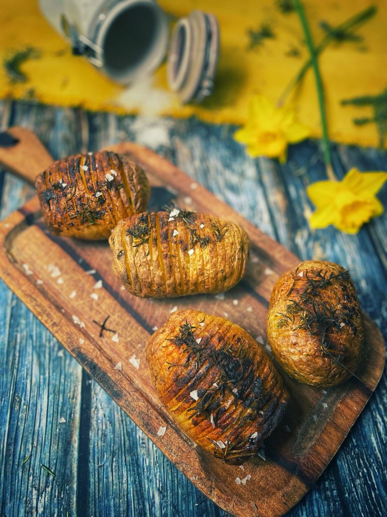Las Patatas Hasselback, también llamadas patatas “a acordeón”, son un acompañamiento típico de la cocina sueca.
