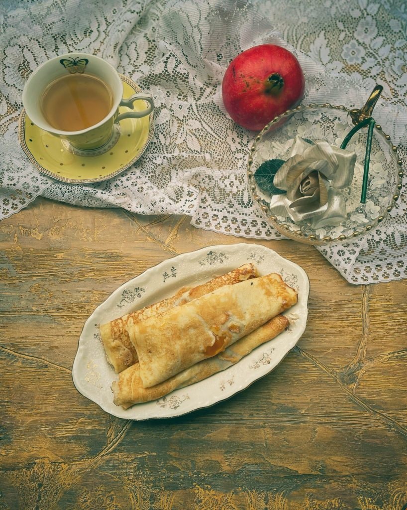 Exacto, la versión tradicional de los bliny rusos es fina y enrollable, no como los pancakes gruesos.