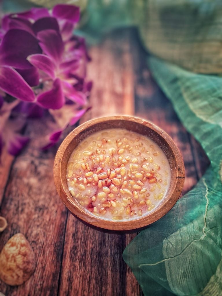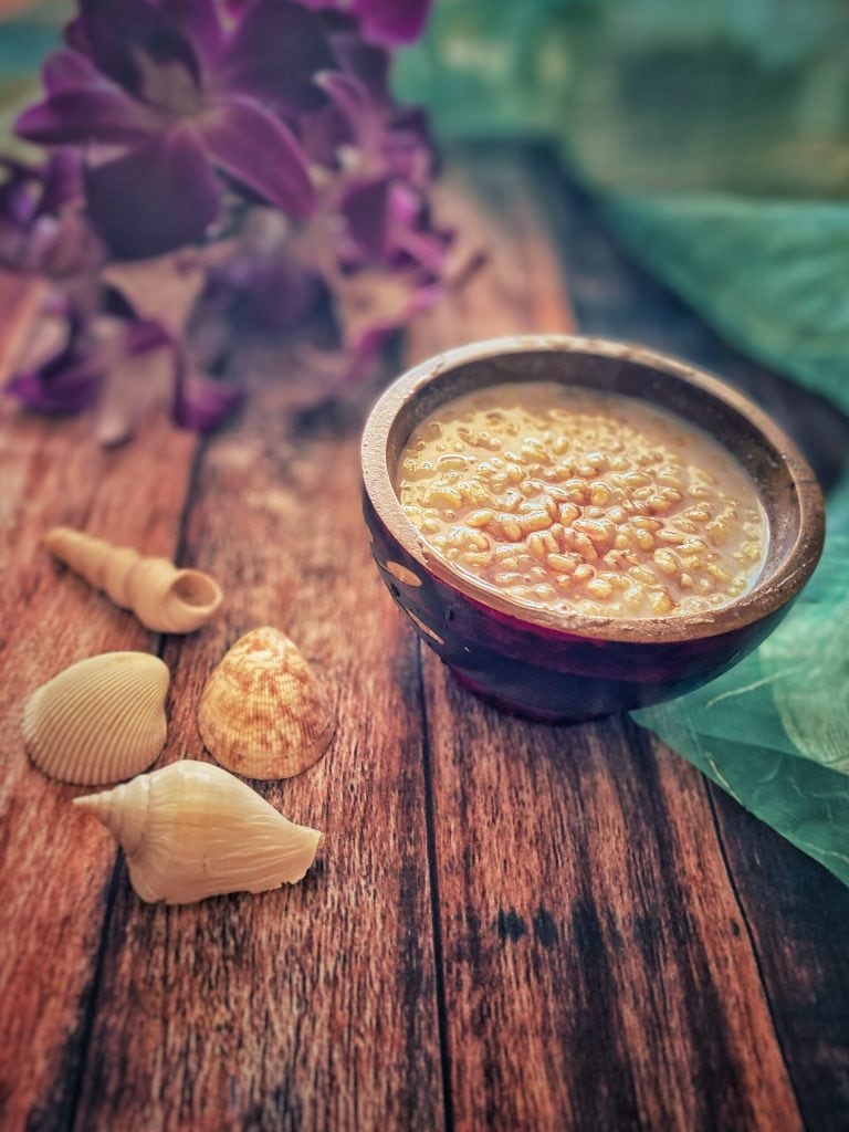 De hecho, preparé la receta durante mi viaje a Ao Nang durante mi viaje en octubre de 2024 para Blog Versión Tailandesa, pero puedes utilizar leche de coco clásica o aromatizarla con pandan dejando las hojas o el polvo en infusión.