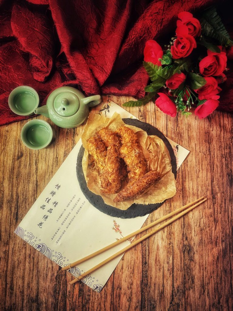 ▶Las pechugas de pollo se golpean hasta alcanzar el tamaño de un filete, se marinan en una mezcla de salsa de soja, jengibre, ajo y polvo de 5 especias, luego se cubren con pan rallado o fécula de patata dulce, y finalmente se fríen en aceite.