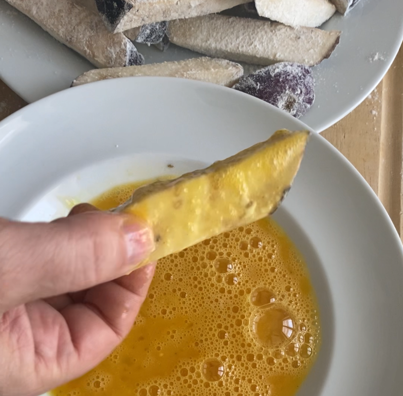 Passez ensuite chaque bâtonnet d’abord dans la farine (en éliminant l’excédent).