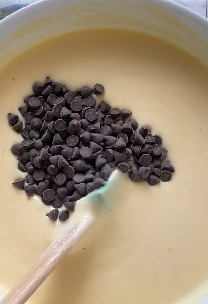 Enfin, ajouter quatre cuillères à soupe de pépites de chocolat (environ 60 gr). Si vous le souhaitez, vous pouvez également ajouter deux cuillères à soupe de sucre.