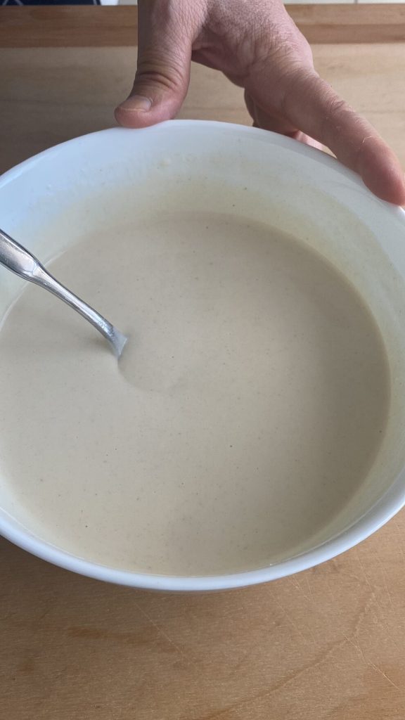 Dans un bol, verser l’eau, la farine et le sel et bien mélanger.
