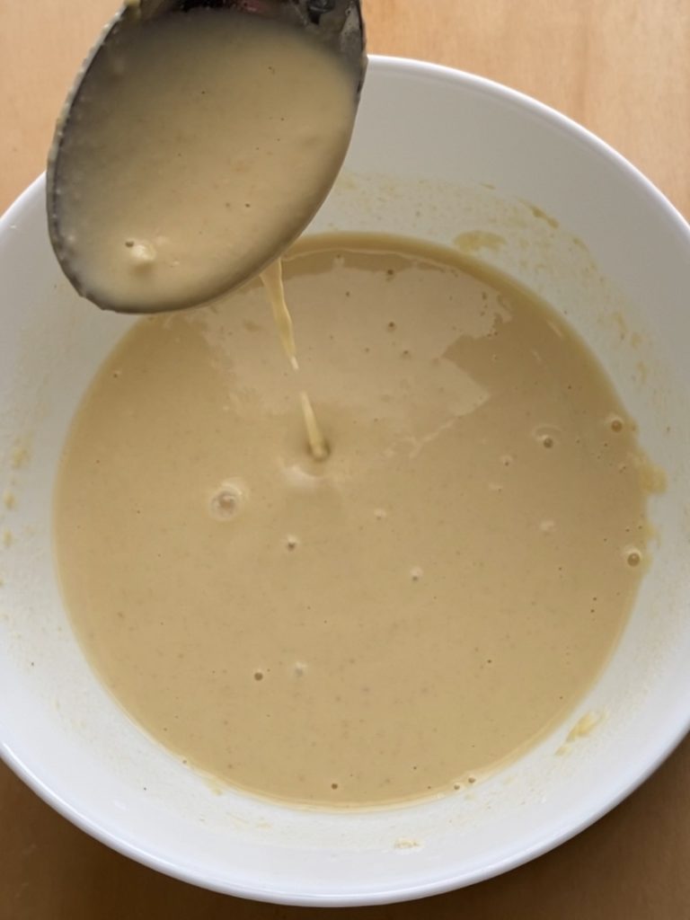 Mélanger jusqu’à obtenir une pâte sans grumeaux.