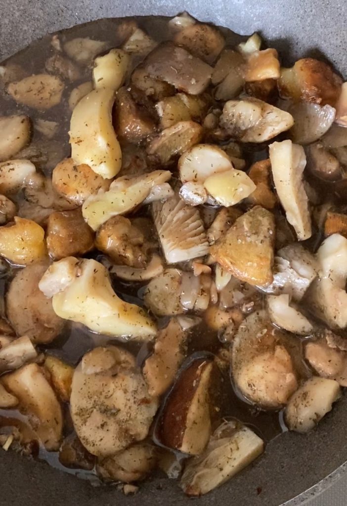 Entre-temps, préparez dans une poêle les légumes de votre choix. J’ai cuisiné un mélange de champignons.