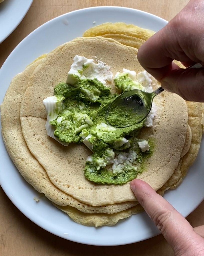J’ai aussi farci l’injera avec du pesto et du stracchino.