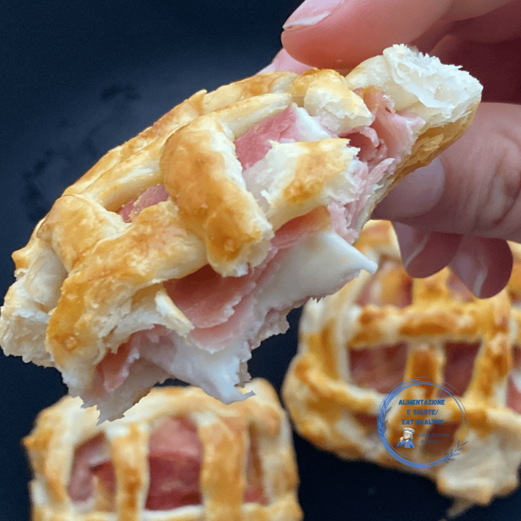 Leur préparation est simple : on part d’une base de pâte feuilletée ou brisée, qui est remplie d’un mélange riche de jambon cuit et de fromage, comme l’emmental, la fontina ou le gouda, qui fond dans une étreinte crémeuse pendant la cuisson.