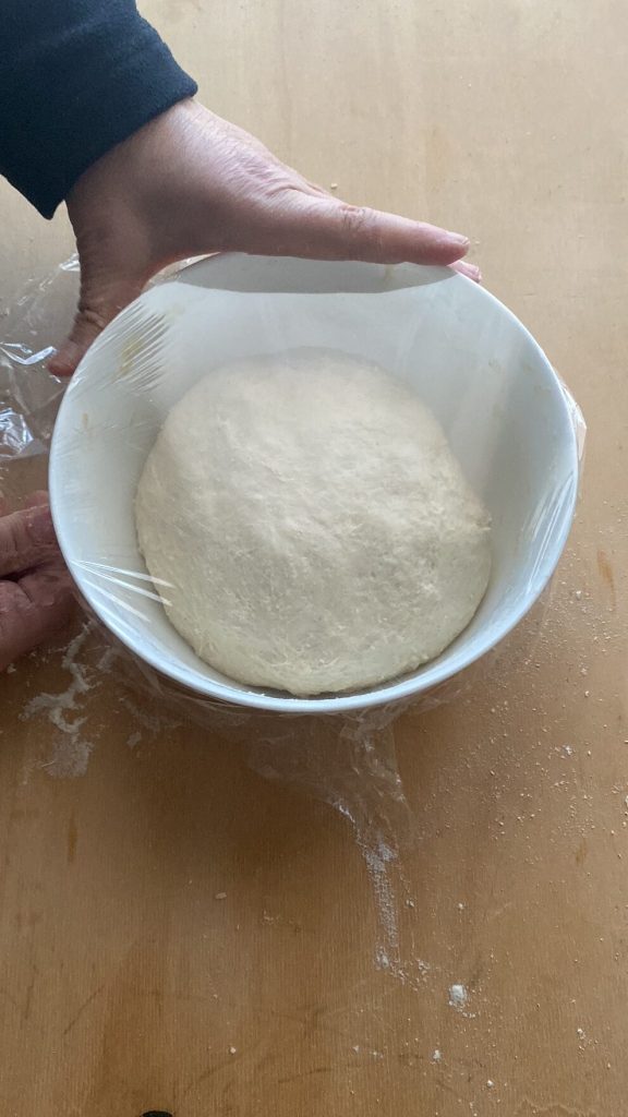 Pétrir rapidement et former une pâte que nous laisserons reposer couverte pendant environ une demi-heure.