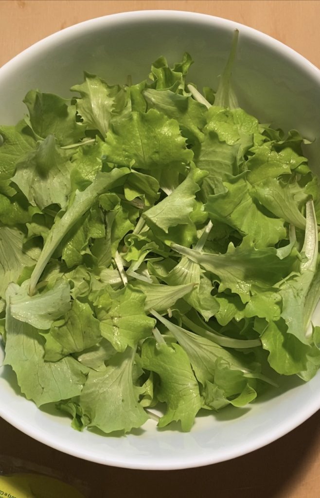 Ma salade d’hiver est composée de chicorée variegato de Castelfranco que je choisis parce qu’en famille ils n’aiment pas les saveurs fortes et ce légume est doux et très délicat.
