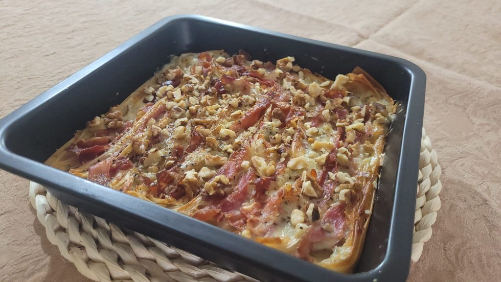 Maintenant, allons préparer l’Accordéon de Pâte Phyllo avec Gorgonzola, Speck et Noix à la Friteuse à Air. Comme toujours, je vous laisse en bas de la recette les conseils pour la cuisson au four