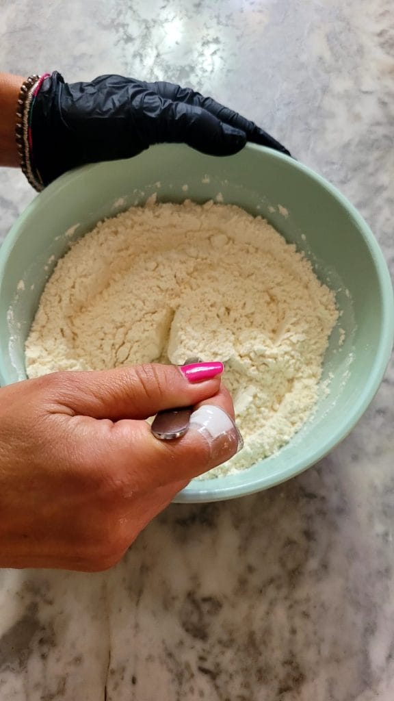 Dans un bol, versez la farine et ajoutez une cuillère à café de bicarbonate