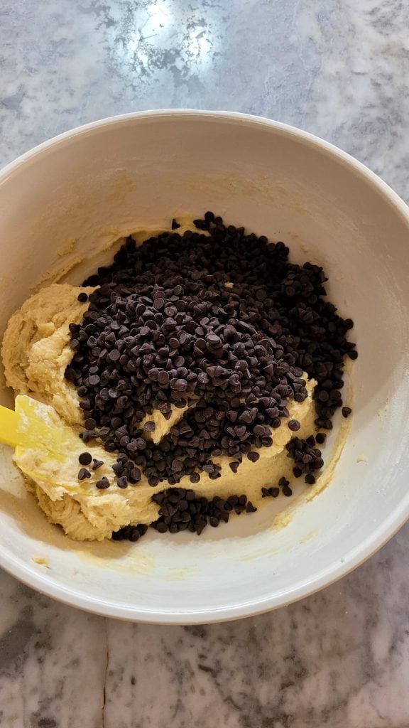 Une fois que vous avez obtenu une pâte douce et homogène, ajoutez les pépites de chocolat