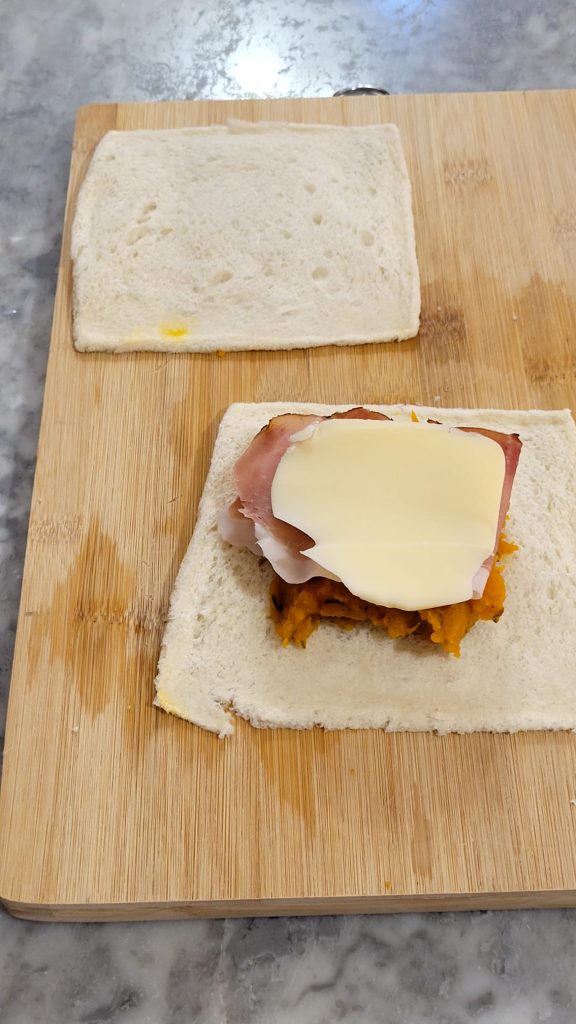 Refermez avec l’autre tranche de pain. Appuyez légèrement en prenant soin de ne pas casser le pain
