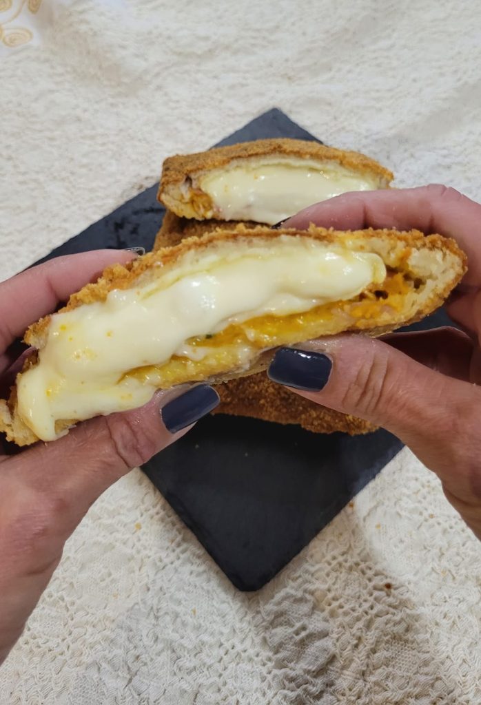 Cette version de Courge en Carrosse dans la Friteuse à air est incroyable ! Après avoir fait la Courge Panée qui a eu beaucoup de succès, je m’étais promis de réaliser une version automnale de la super gourmande et classique « mozzarella in carrozza », même si je dois admettre que le web est plein de recettes de côtelettes de courge ou en carrosse, mais lorsque j’ai vu une vidéo de chef Mainardi, je n’ai pas pu résister à reproduire la sienne ! Je vous assure que l’effet WoW n’est pas seulement visuel mais aussi gustatif !!