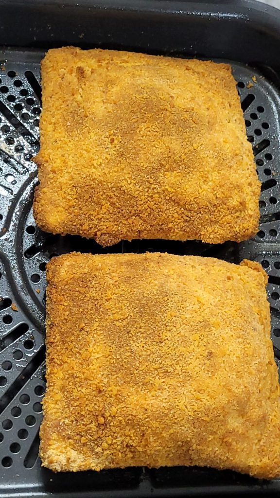 Passez le pain d’abord dans l’œuf puis dans la chapelure en pressant bien pour qu’elle adhère et en scellant encore plus les bords pour éviter que le fromage ne s’échappe. Pulvérisez de l’huile des deux côtés