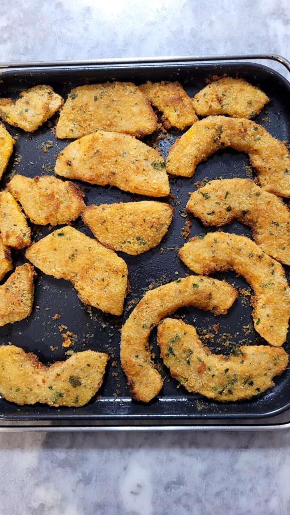 Si vous me suivez, je vous explique comment j’ai préparé la Courge Panée à la Friteuse à Air