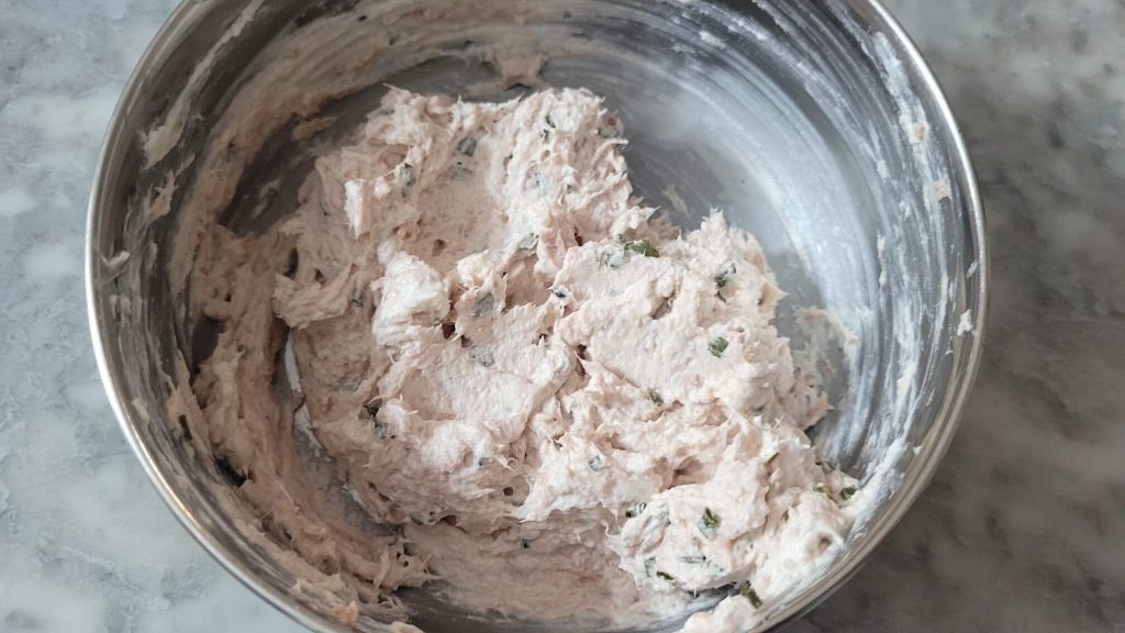 Commencez par préparer la garniture des croissants, en versant et en mélangeant les ingrédients dans un bol. Le thon doit être égoutté