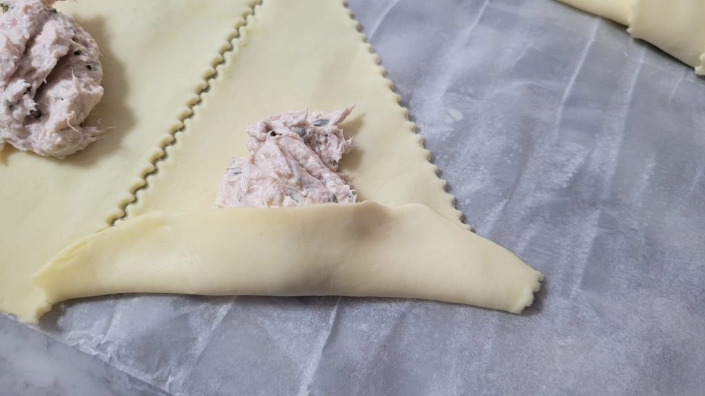 Les croissants de pâte feuilletée se préparent rapidement et vous pouvez les garnir de nombreuses façons. Ceux que je vous propose dans cette recette ont une garniture de thon, de robiola et de ciboulette.