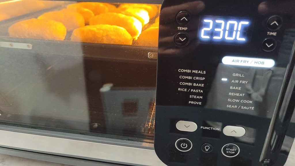 • Je les ai disposées sur la plaque de ma friteuse à four et j’ai donné quelques pulvérisations d’huile, si vous avez celle à tiroir, placez-les directement sur la grille