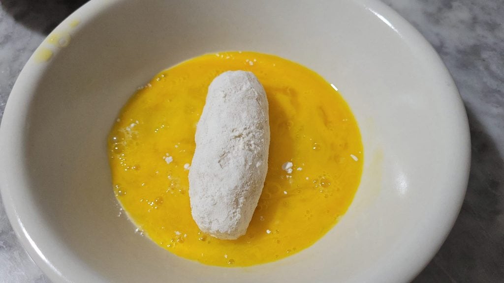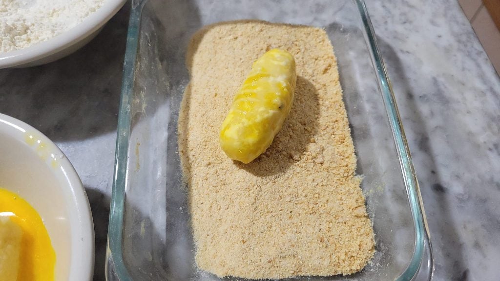 • Pour commencer, faites cuire les pommes de terre à l’eau ou à la vapeur et dès qu’elles sont prêtes, écrasez-les avec une fourchette ou un presse-purée. Laissez-les refroidir et, dans le bol où vous avez transféré les pommes de terre écrasées, ajoutez l’œuf, les fromages, le sel et le poivre et mélangez bien, couvrez avec du film alimentaire et mettez au réfrigérateur pendant au moins 4 heures