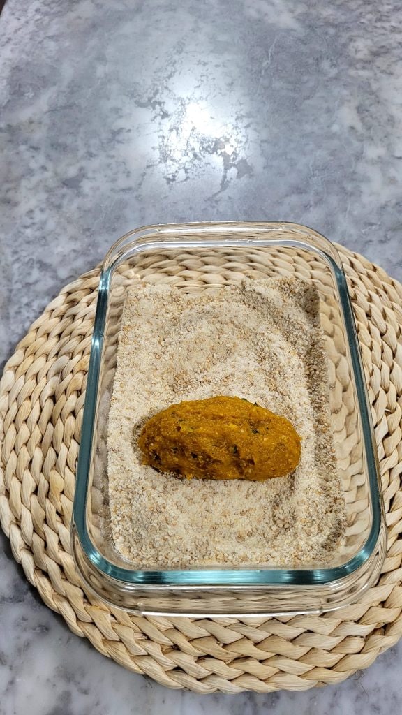 Avec une autre partie de la pâte, couvrez pour former votre croquette. Continuez jusqu’à épuisement du mélange