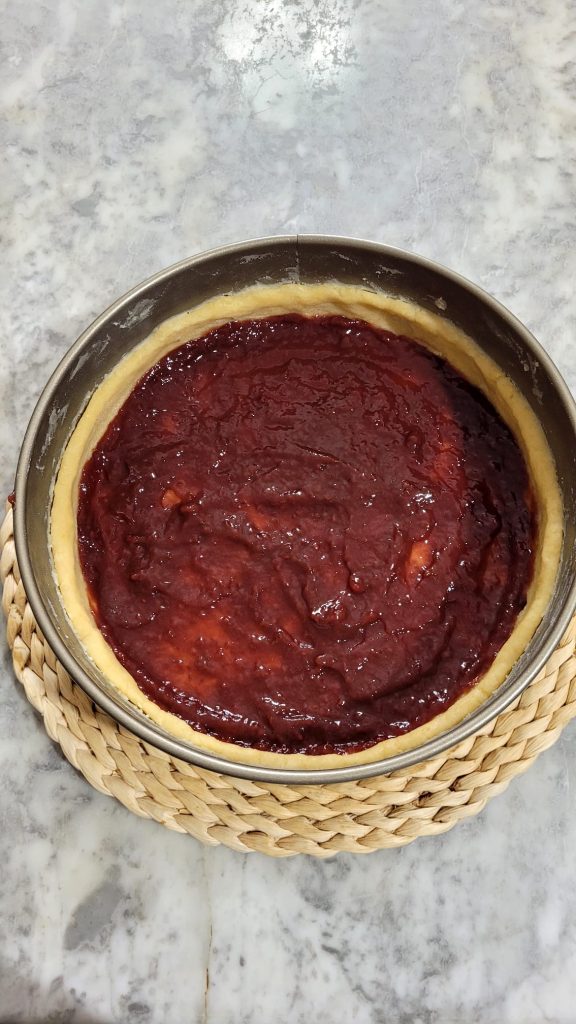 Pour cette Crostata Cheesecake à la ricotta et aux fraises j’ai utilisé ma base de pâte sablée friable, garnie d’une couche de confiture de fraises et d’une crème douce et délicate à base de ricotta à la place du classique fromage à tartiner. Le résultat est une garniture légère mais super crémeuse, exactement comme je l’aime.