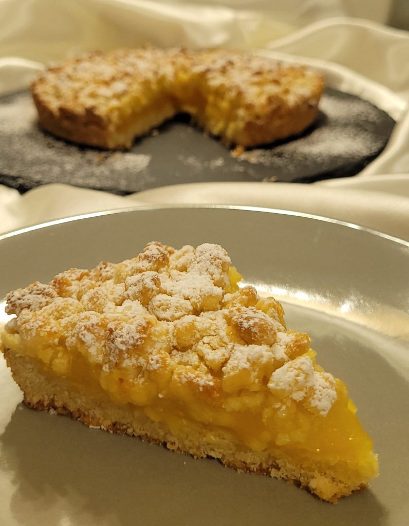 La particularité de ce crumble est que la crème ne contient ni lait ni œufs, le rendant ainsi très léger. Il se prépare avec du zeste et du jus d’orange et, pour un goût encore plus intense, vous pouvez simplement ajouter une cuillère à café de pâte d’orange. Il en va de même pour la pâte sablée du crumble : le parfum sera vraiment incroyable!