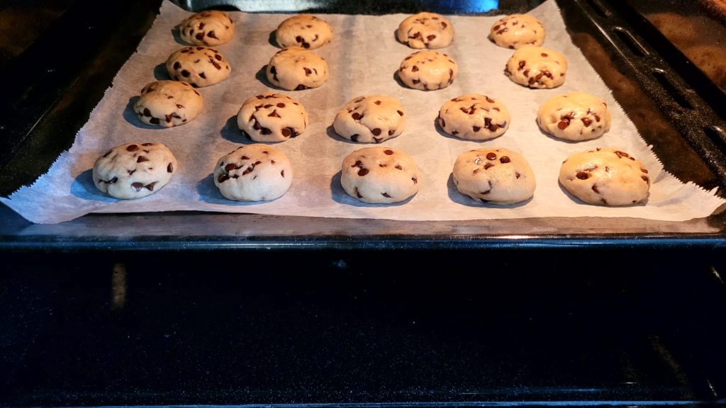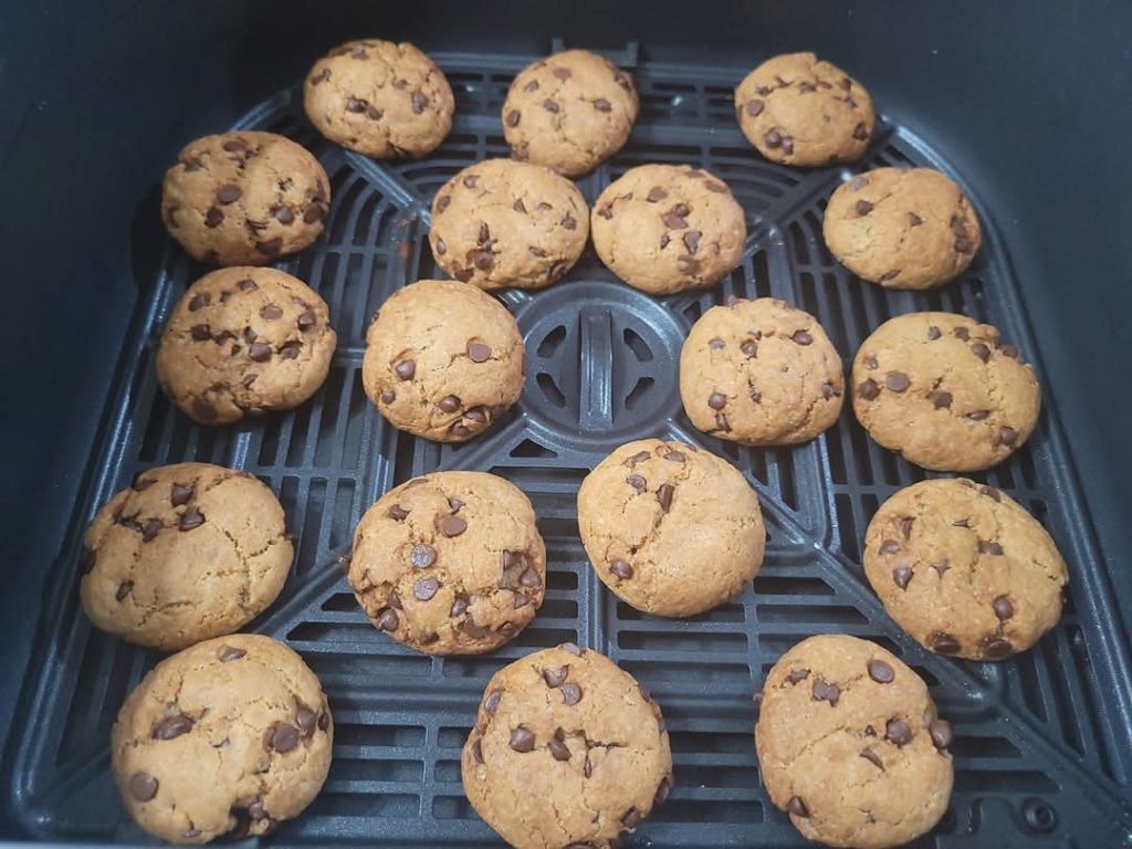 Préchauffez la friteuse à air quelques minutes. Disposez les biscuits espacés, pendant la cuisson ils auront tendance à s’aplatir, directement sur la grille de la friteuse à air. Cuisez à 170° pendant 10/12 minutes