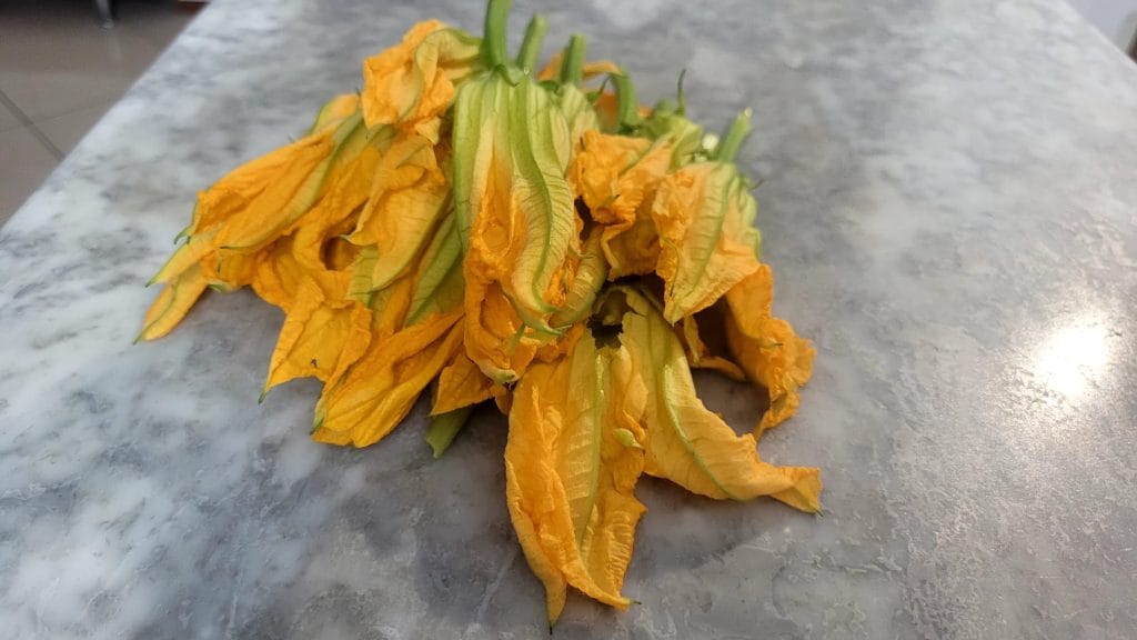 Les fleurs de courgette doivent être fraîches et sont très délicates, je vous conseille de les préparer dans les 2 jours suivant l’achat