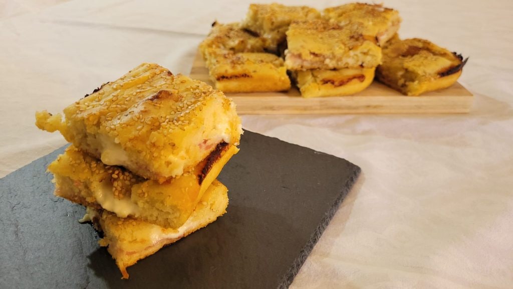 Votre focaccia liquide farcie est prête, coupez-la et servez-la ! Essayez-la et faites-moi savoir