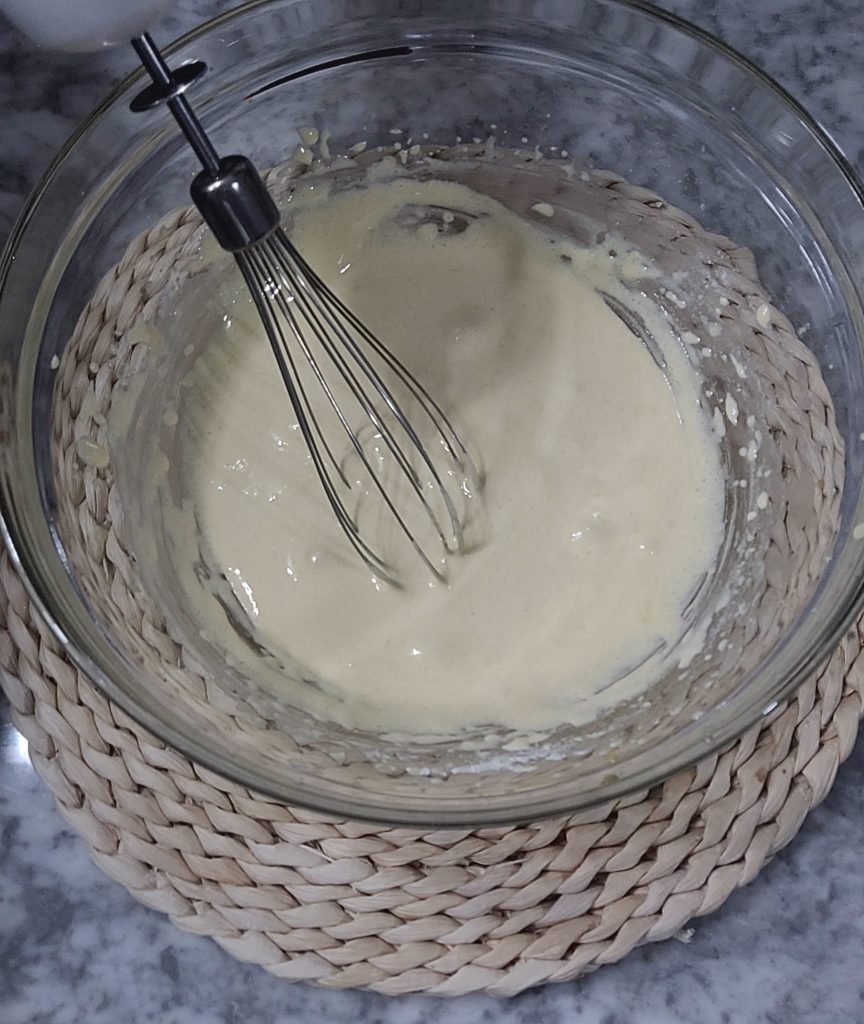 Continuez de mélanger au fouet jusqu’à obtenir une pâte lisse