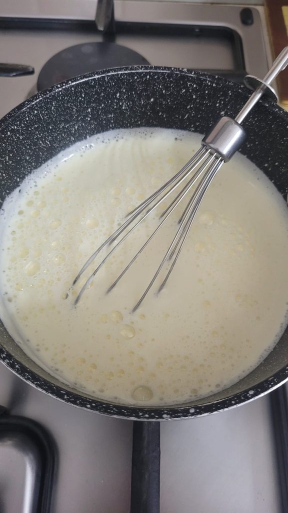 Mélangez continuellement au fouet pour éviter la formation de grumeaux et laissez épaissir